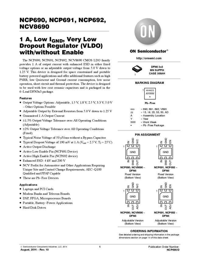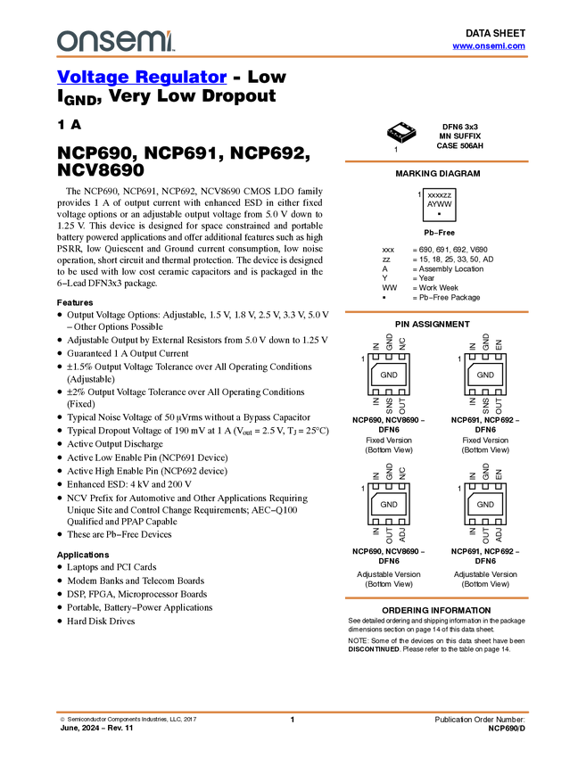 LDO Regulator, 1 A, Ultra-Low Dropout, with Enable