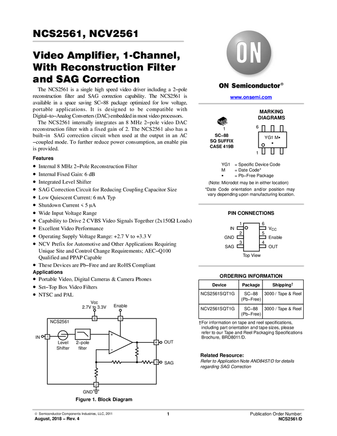 Video Amplifier, 1-Channel, with Reconstruction Filter and SAG Correction