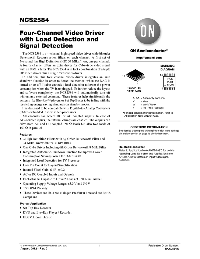 Video Amplifier, 4-Channel, with Load Detection and Signal Detection