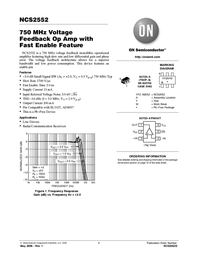 750 MHz Voltage Feedback Operational Amplifier w/ Fast Disable