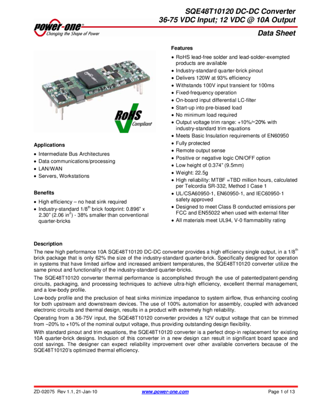 Module DC-DC 1-OUT 12V 10A 120W 8-Pin 1/8-Brick
