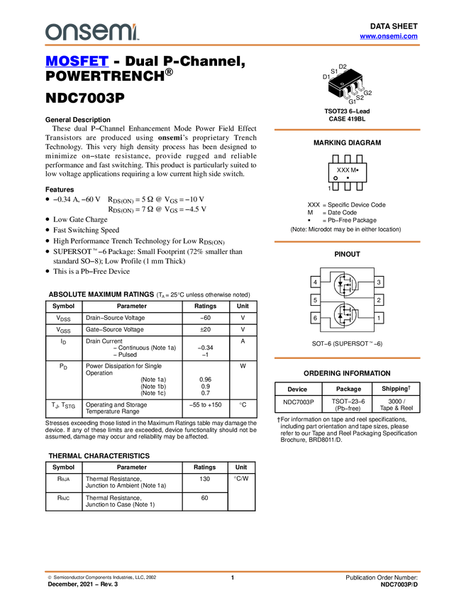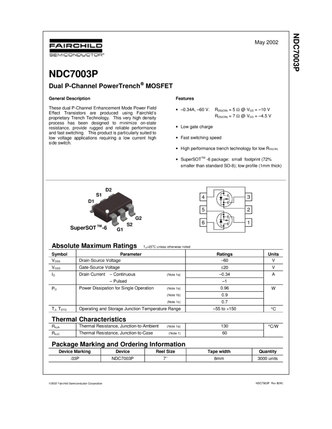 Dual P-Channel Enhancement Mode Field Effect Transistor -60V, -0.34A, 5Ω