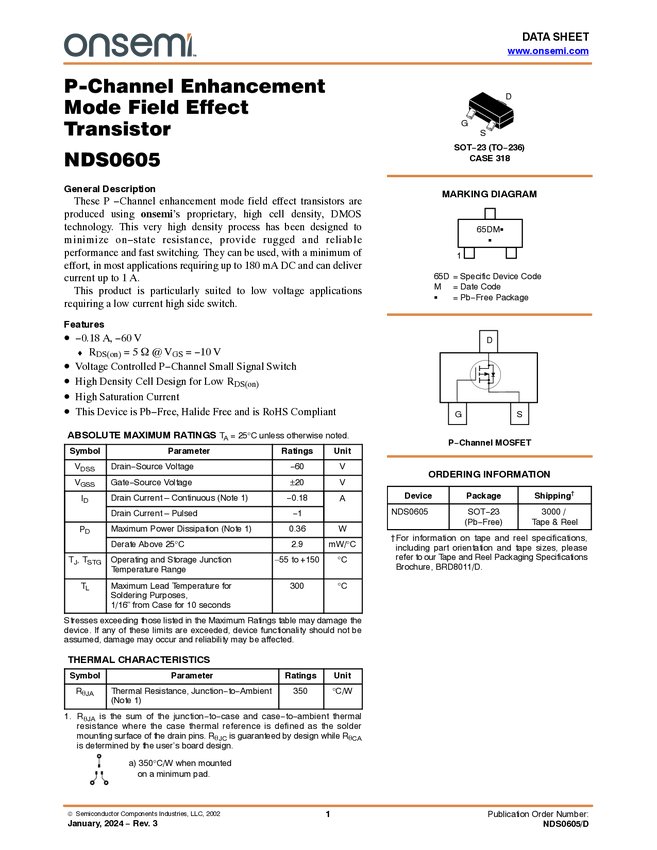 P-Channel Enhancement Mode Field Effect Transistor -60V, -0.18A, 5Ω