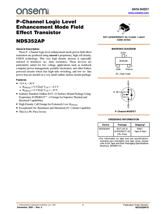 -30V P-Channel Logic Level Enhancement Mode Field Effect Transistor Recommend FDN352AP