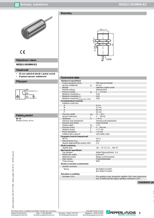 Pepperl+Fuchs Czujnik indukcyjny PNP NEB22-30GM60-E2