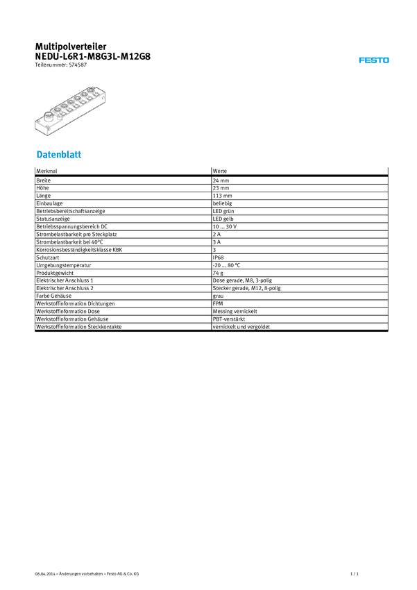 Akcesorium FESTO NEDU-L4R1-M8G3L-M12G8 574586 1 szt.