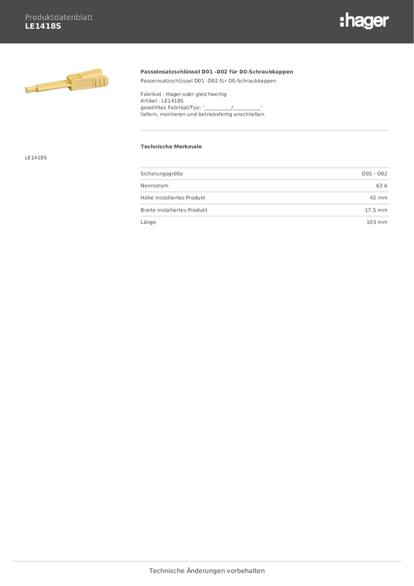 Hager LE1418S Podstawa bezpiecznikowa Neozed Rozmiar bezpiecznika = D02 63 A 1 szt.
