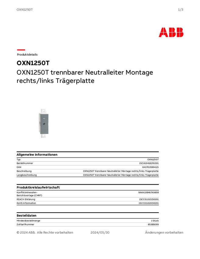 ABB 1SCA022752R9950 Oddzielny przewód neutralny 1 szt.