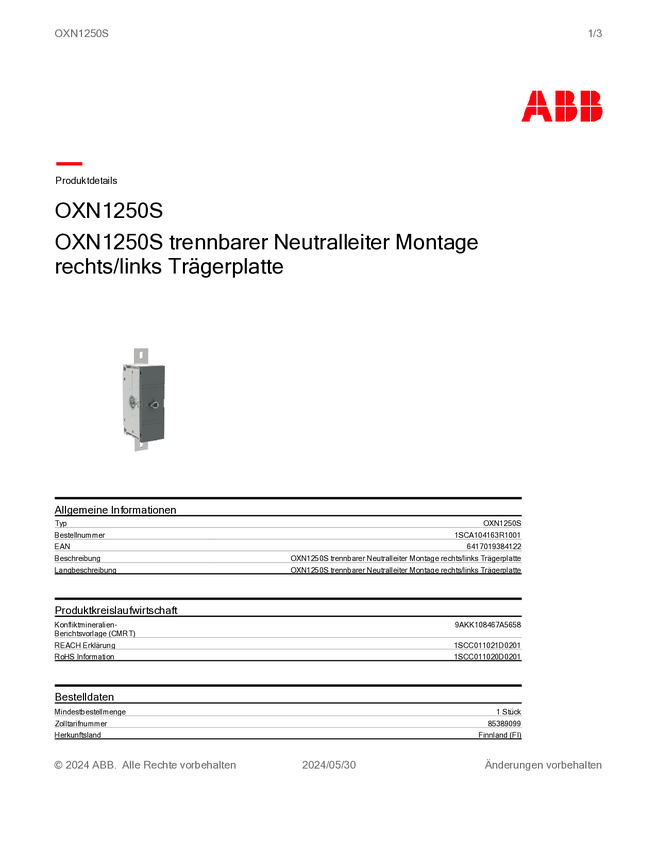 ABB 1SCA104994R1001 Oddzielny przewód neutralny 1 szt.