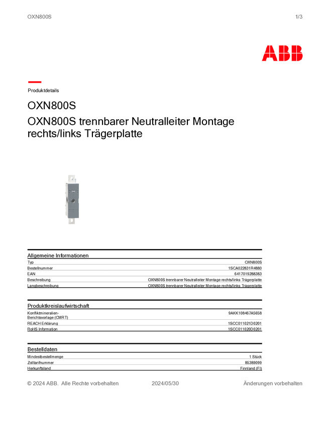 ABB 1SCA022831R4880 Oddzielny przewód neutralny 1 szt.