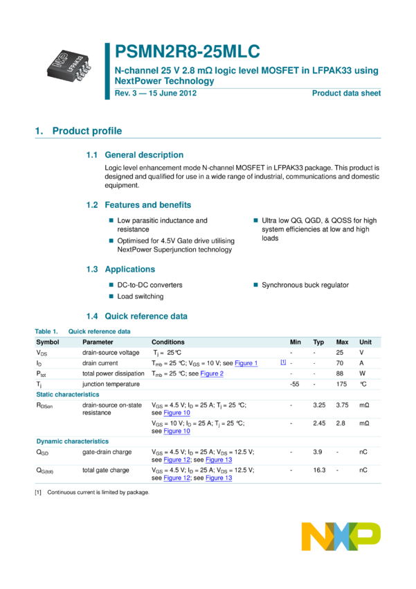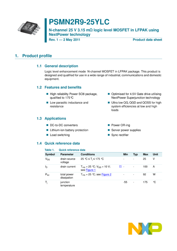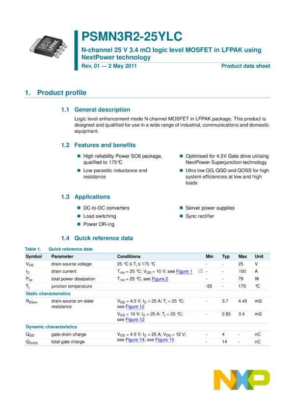 N-channel 25 V 1.3 mΩ logic level MOSFET in LFPAK using NextPower technology