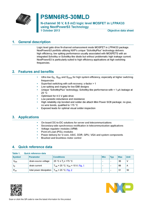 N-channel 30 V, 1.4 mΩ logic level MOSFET in LFPAK56 using NextPowerS3 Technology