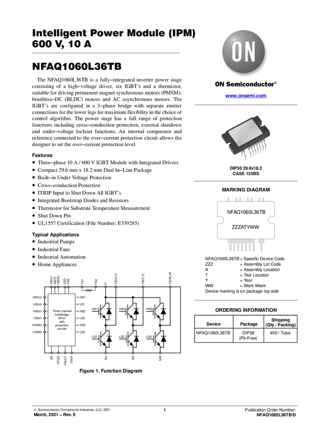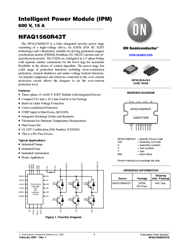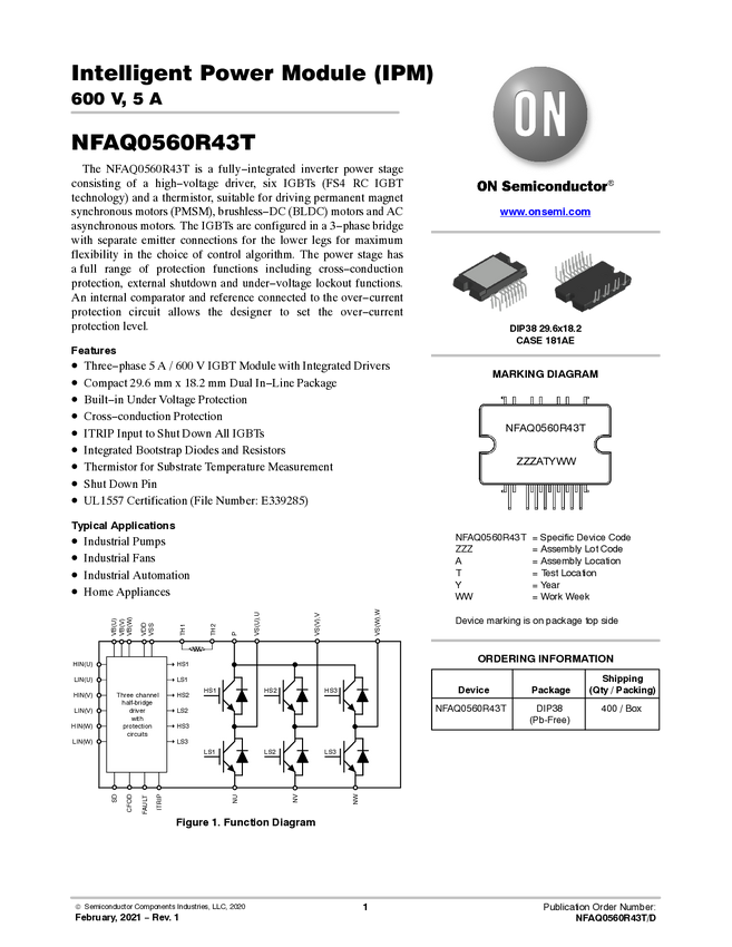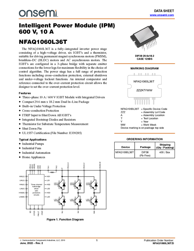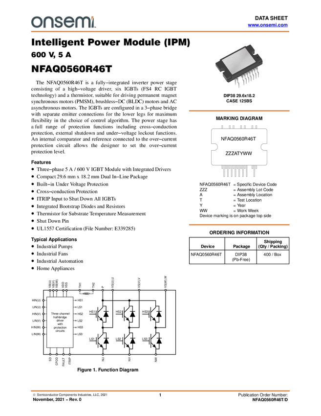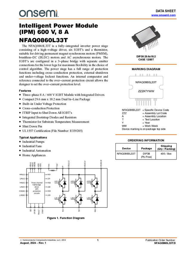Intelligent Power Module (IPM), 600 V, 8 A, Short lead