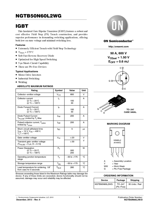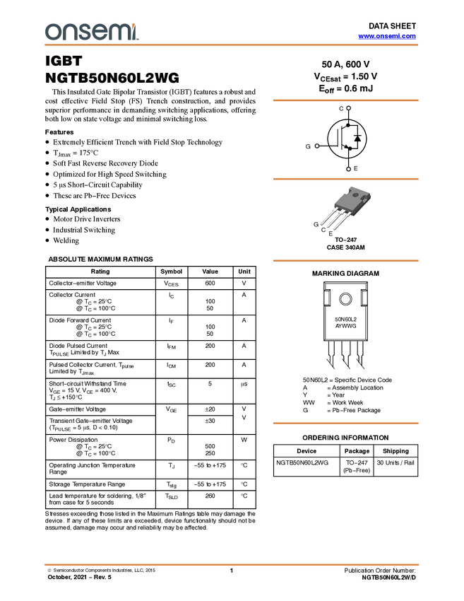 IGBT, 600 V, 50 A, FS1 Solar/UPS