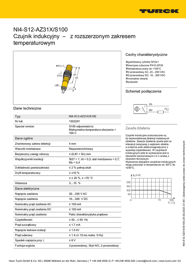 Turck Czujnik indukcyjny nie podtynkowy NI4-S12-AZ31X/S100
