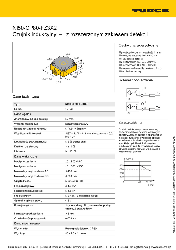 Turck Czujnik indukcyjny nie podtynkowy NI50-CP80-FZ3X2