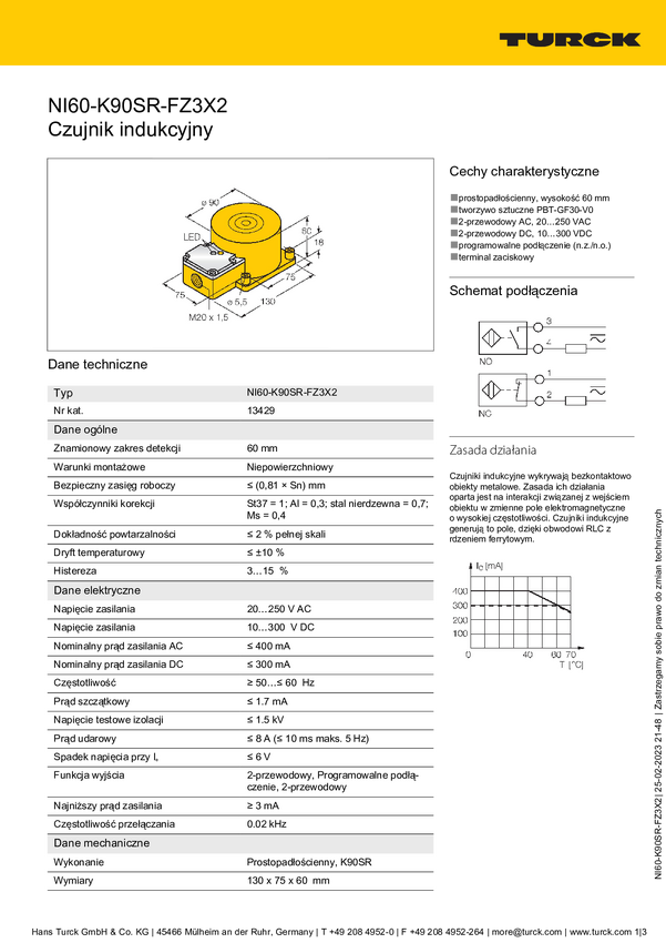 Turck Czujnik indukcyjny nie podtynkowy NI60-K90SR-FZ3X2