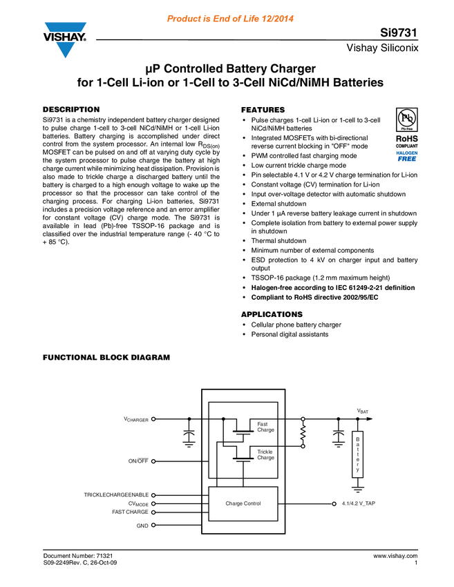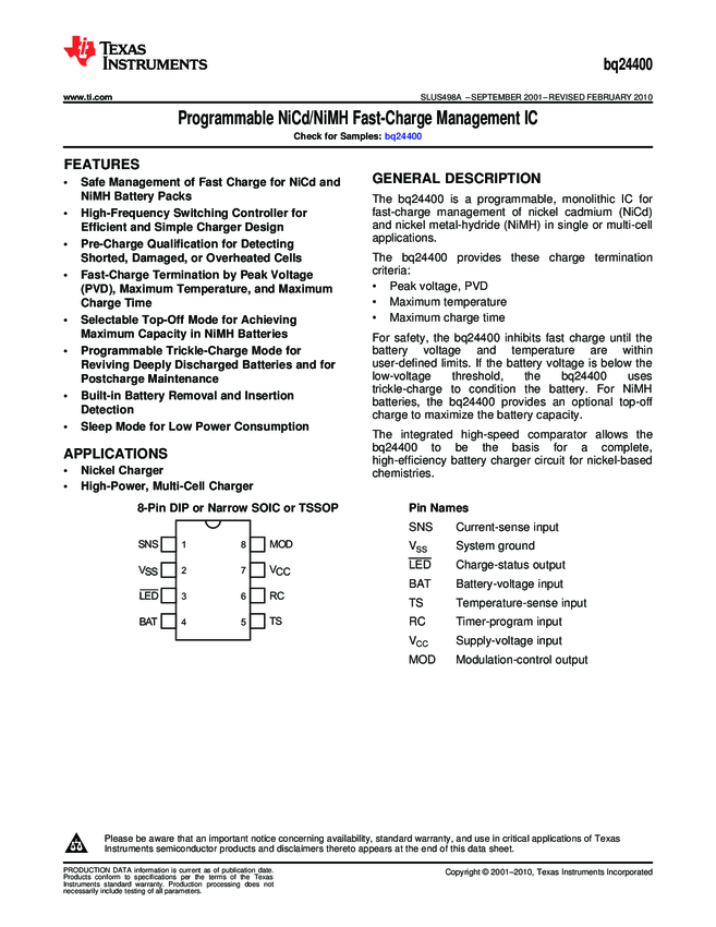 µP Controlled Battery Charger for 1-Cell Li-ion or 1-Cell to 3-Cell NiCd/NiMH Batteries