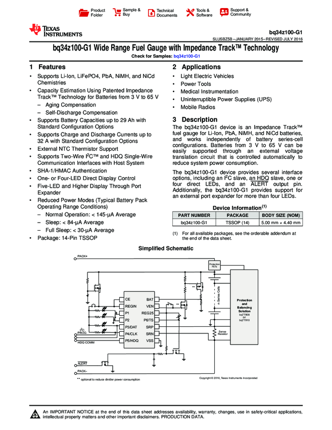 Fuel Gauge Li-Ion/Li-Polymer/LiFePO4/NiCd/NiMH 14-Pin TSSOP T/R