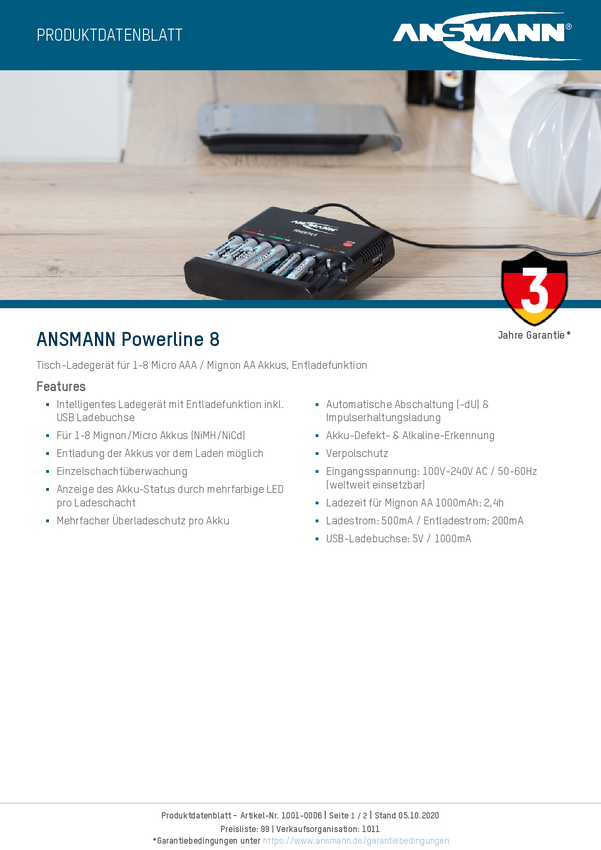 Ładowarka do akumulatorów Ansmann Powerline 8 NiCd, NiMH
