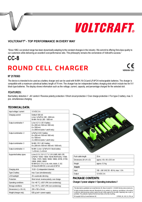 Ładowarka do akumulatorów VOLTCRAFT CC-8 + HR03 SE + HR6 SE LiIon, LiFePO, NiMH, NiCd