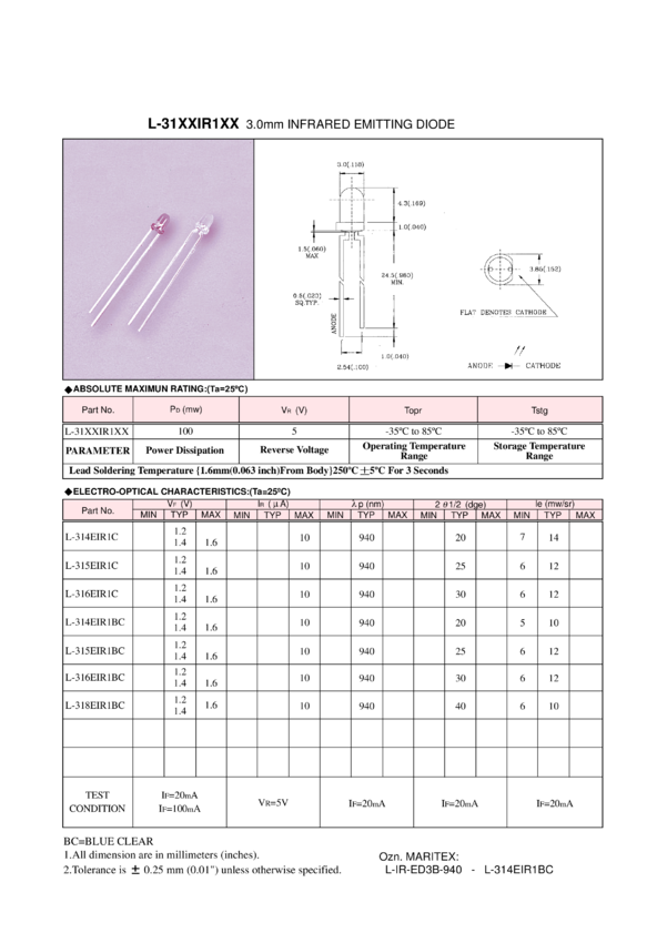 Dioda nadawcza IR 940nm, niebieska, D=3mm