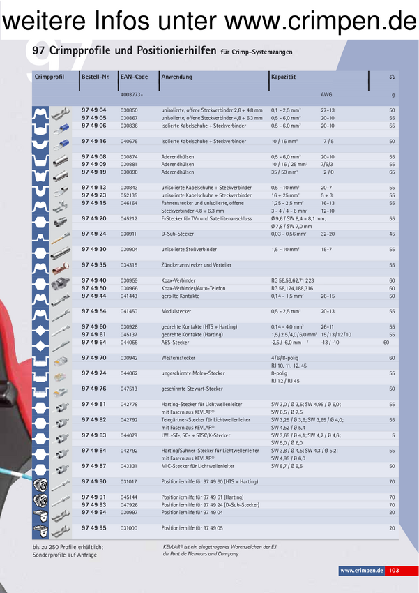 Pozycjoner do matrycy zagniatającej, końcówki nasuwane, nieizolowane (4,8 + 6,3 mm)