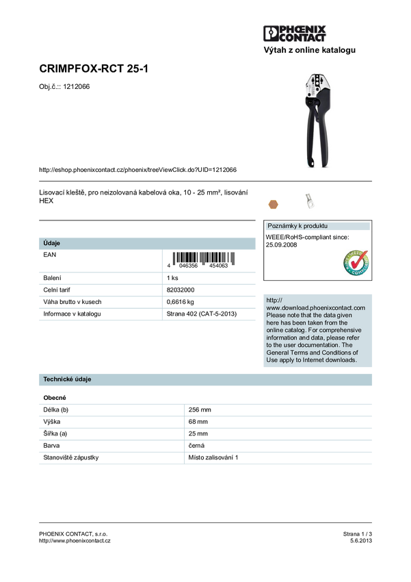 Phoenix Contact CRIMPFOX-RCT 25-1 1212066 Zaciskarka terminale tubowe nieizolowane 10 do 25 mm²