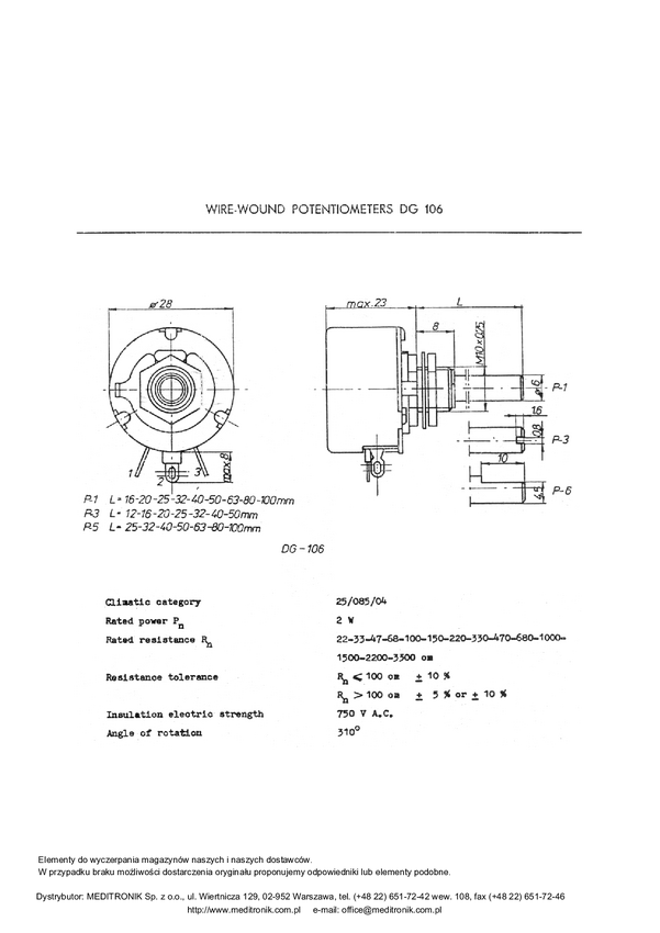 Te potencjometry są w menu "Potencjometry dutowe dużej mocy" Nieprodukowane, dostępne tylko niektóre wartości.
