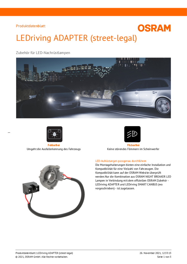 Osram Automotive Adapter do Night Breaker H7-LED 64210DA07 Wersja (żarówek samochodowych) H7, Adapter für Night Breaker