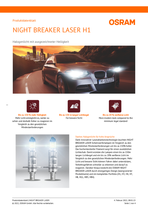 Osram Automotive 64150NL-2HB Żarówki halogenowe Night Breaker® Laser Next Generation H1 55 W 12 V