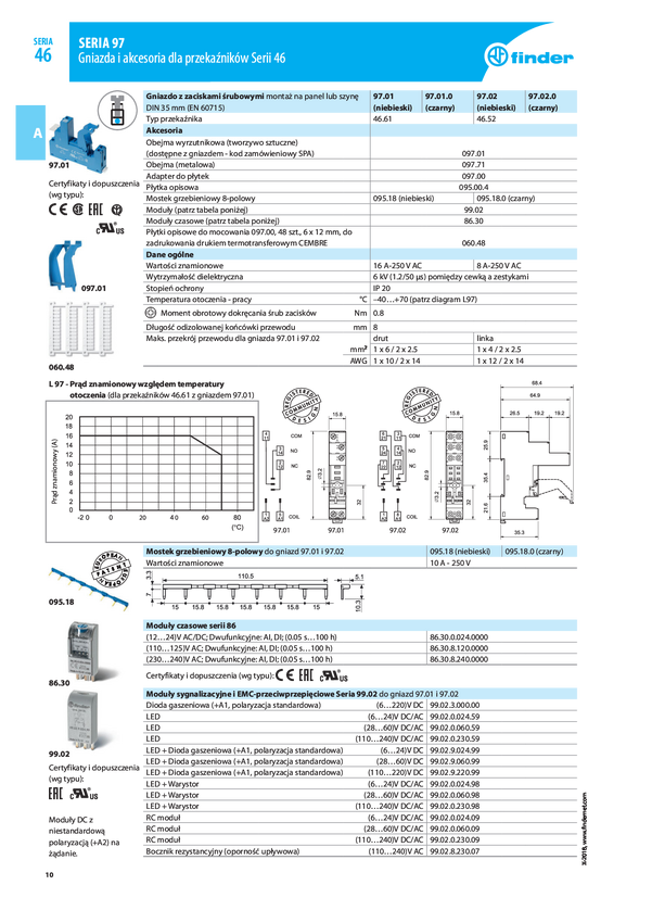 Gniazdo przekaźnika; F97.01.SPA; na szynę DIN35; śrubowy na panel; niebieski; z obejmą; kompatybilne z przekaźnikami: serii: 46.61 Finder; RoHS;