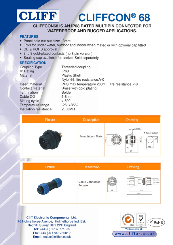 Cliff CP303010 Złącze męskie głośnikowe CP303010, 1 szt.