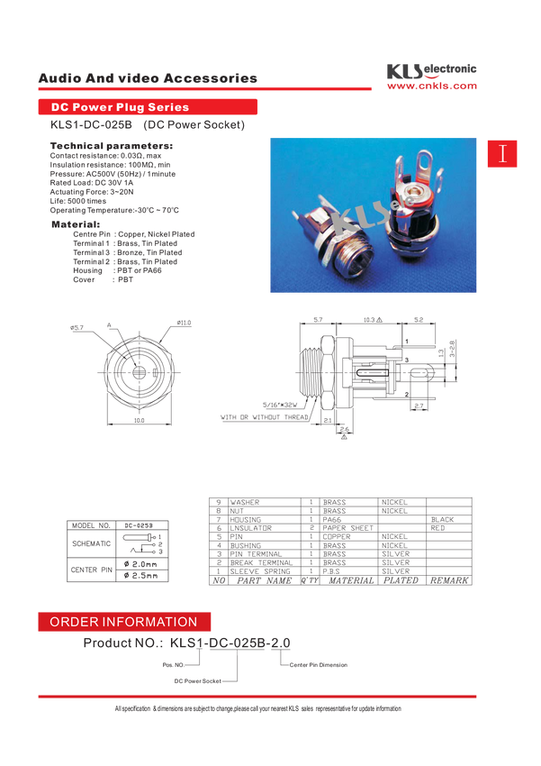 Gniazdo; PC-G2.1; zasilające DC; męskie; 2,1/5,5mm; 2,1mm; 5,5mm; na panel; NINIGI; RoHS
