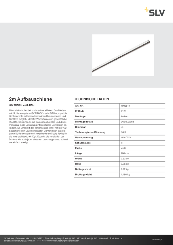 SLV Track Element systemu szynowego niskonapięciowego Szyna biały 1006544 48V TRACK 2m Aufbauschiene
