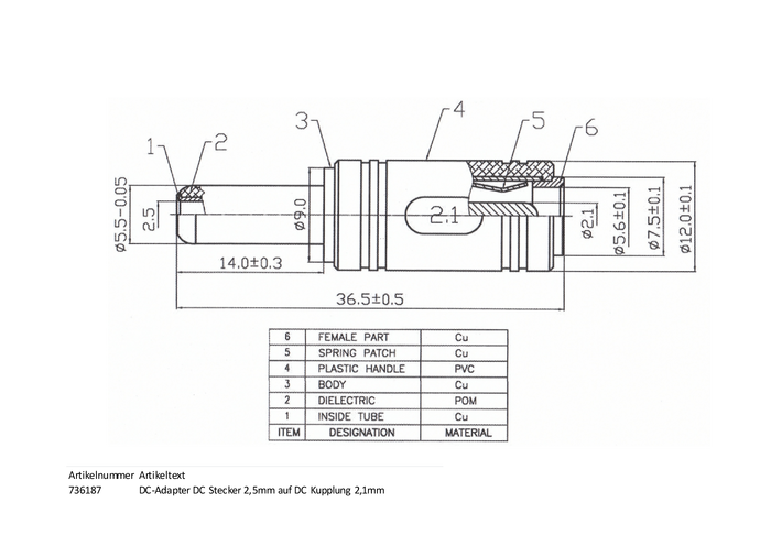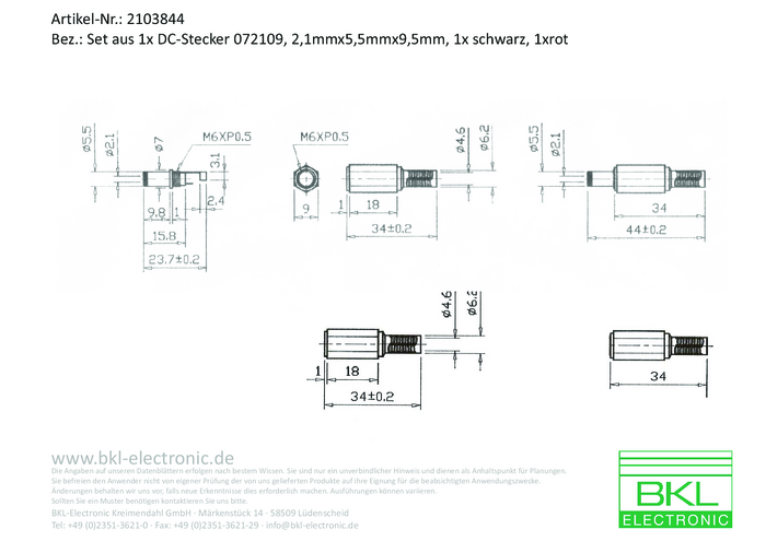 Złącze męskie niskonapięciowe BKL Electronic 075236 złącze męskie proste 5.50 mm 2.10 mm 1 zest.