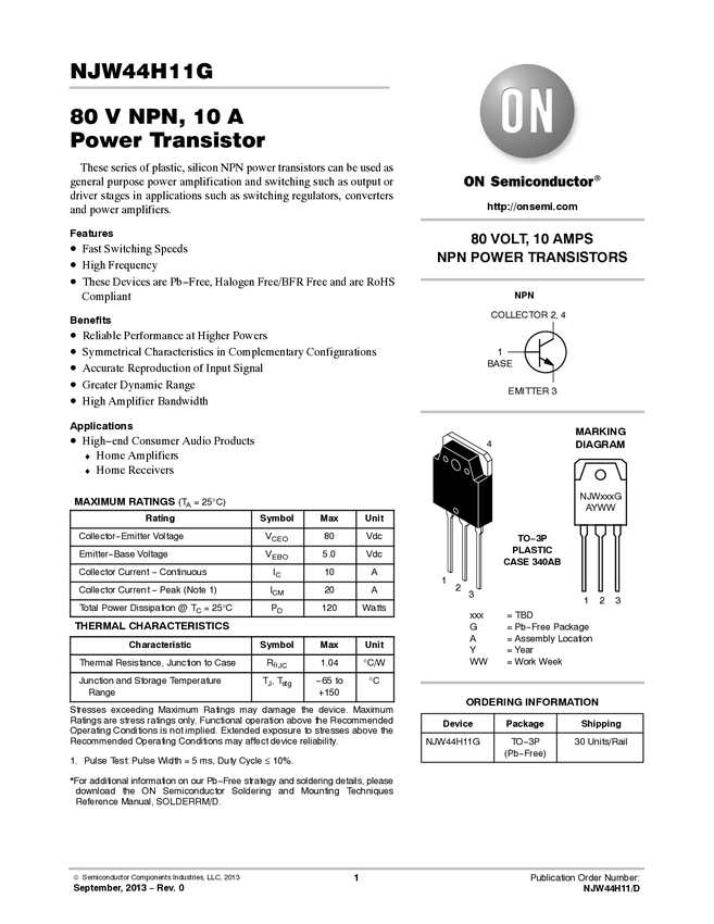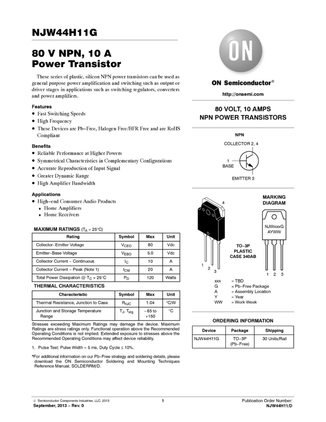 NPN Power Bipolar Transistor, 80 V, 10 A