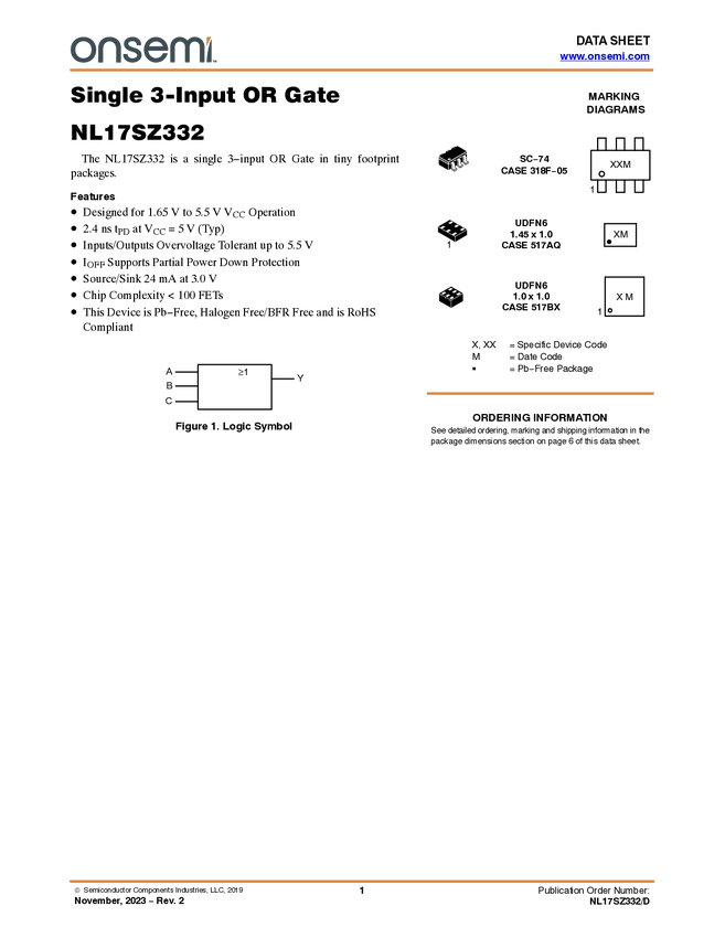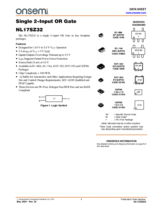 NL17SH32 Single 2-Input OR Gate