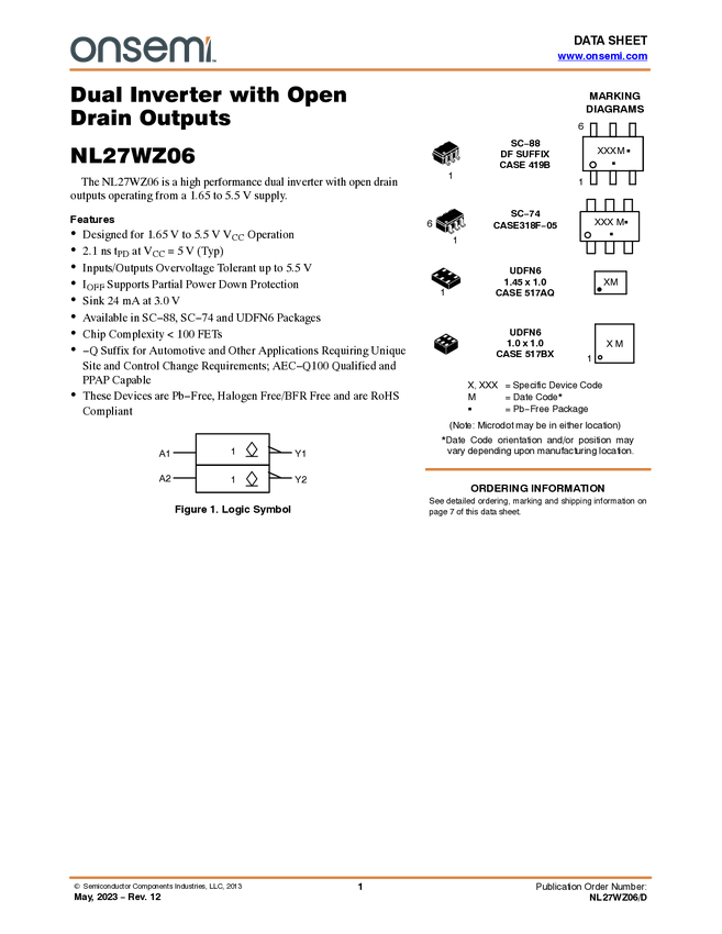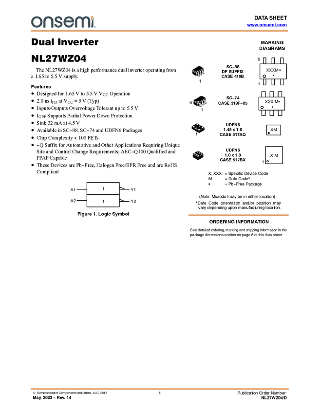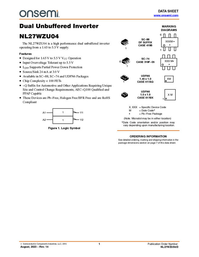 Inverter 2-Element CMOS 6-Pin SC-88 T/R