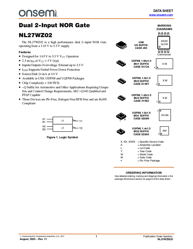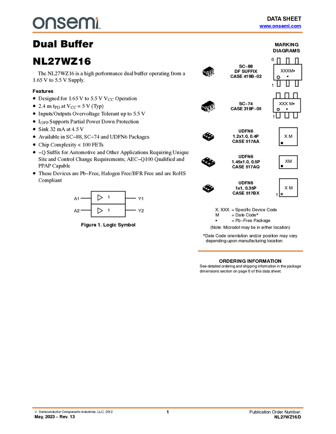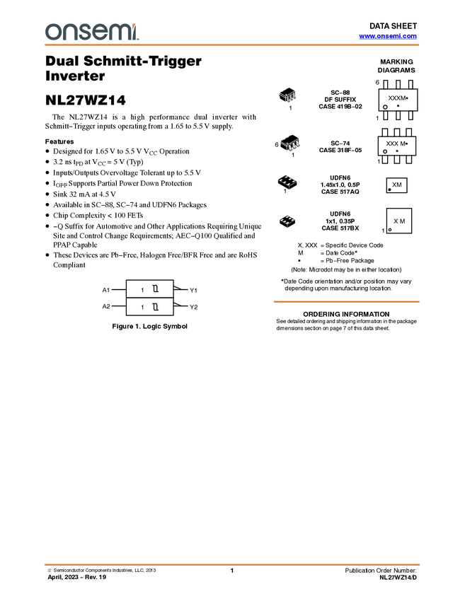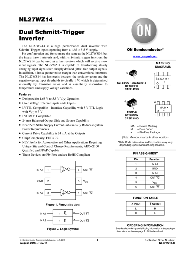 Dual Non-Inverting Buffer withSchmitt Trigger Input