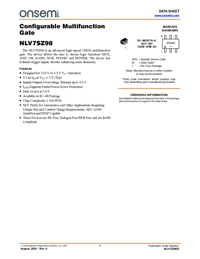 Multi-Function Gate 3-Element 3-IN CMOS 6-Pin SOT-363 T/R