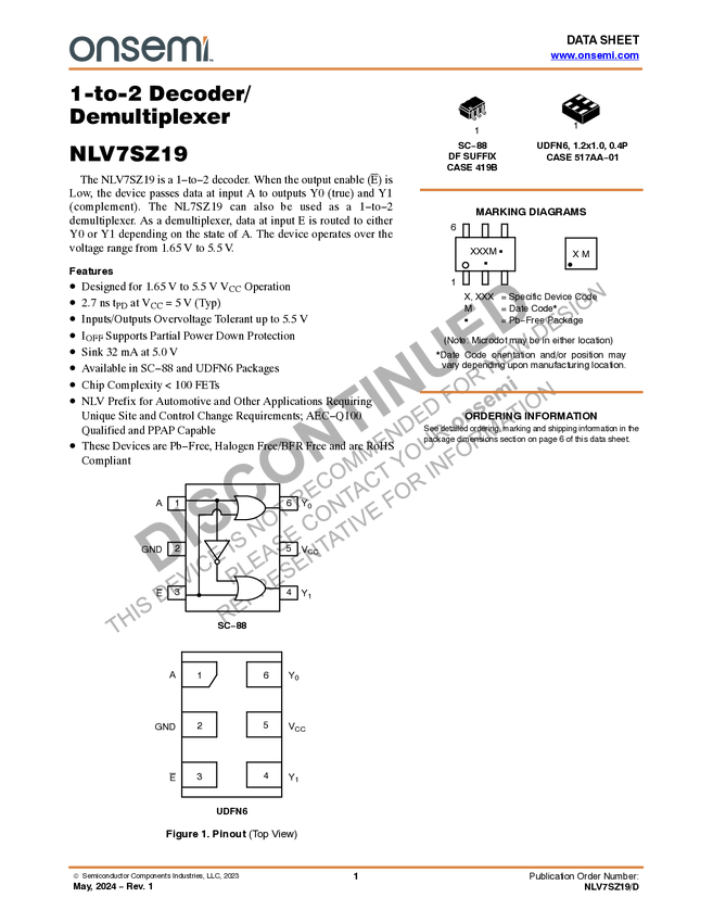 1:2 Digital Demultiplexer Non-Inverting, 3-State