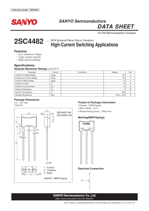 Bipolar Transistor, -50V, -3A, Low VCE(sat), PNP Single NMP