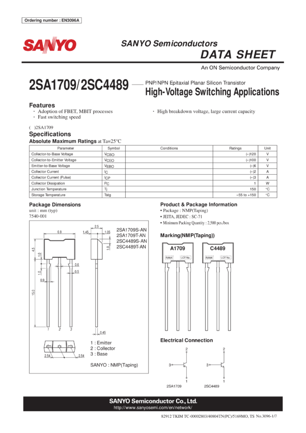 Bipolar Transistor, -180V, -160A, Low VCE(sat) PNP Single NMP
