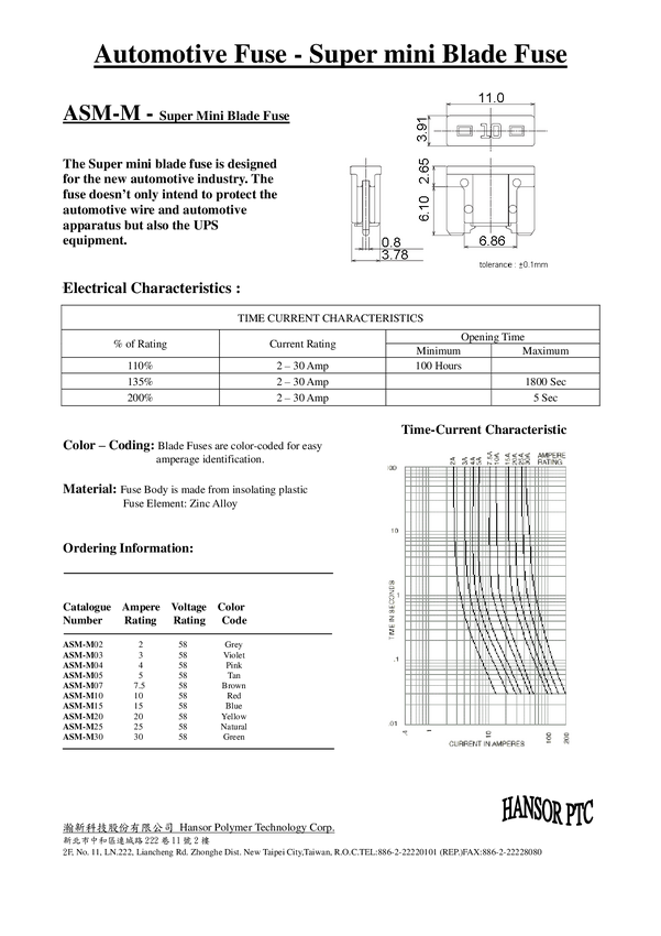 Hansor ASM-M10 Bezpiecznik nożowy Mini, 58 V, 10 A, 1 szt.