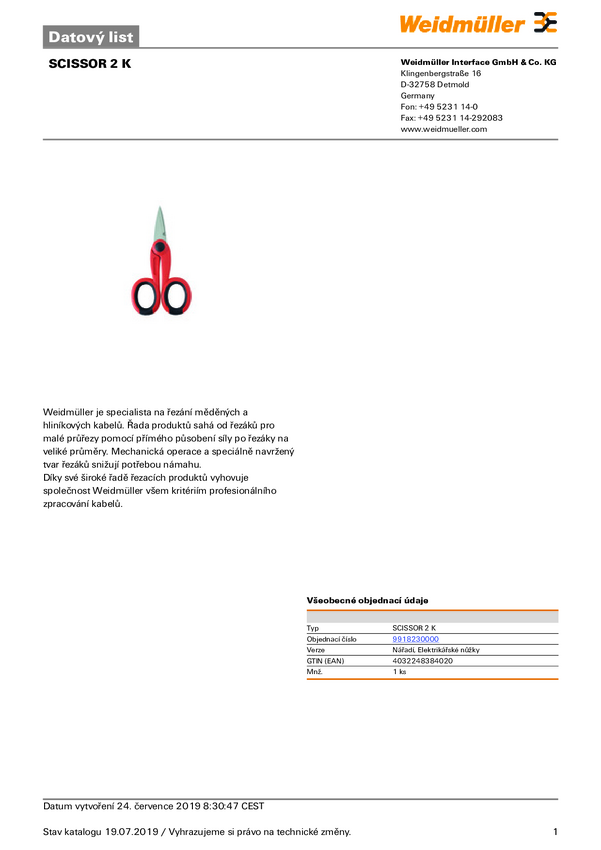 Weidmüller 9918230000 Nożyczki dla elektryka 150 mm czerwony/czarny