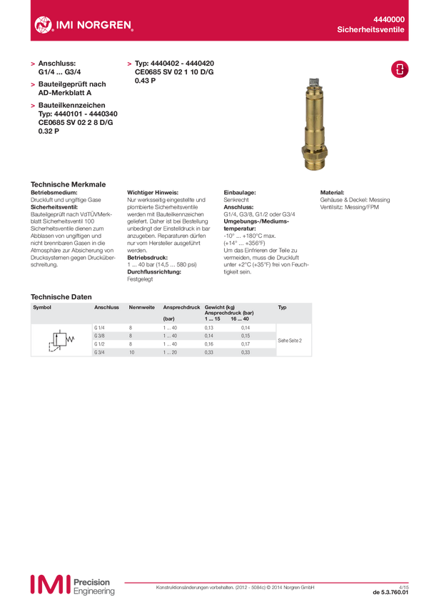 Zawór bezpieczeństwa Norgren 4440310, G1/2