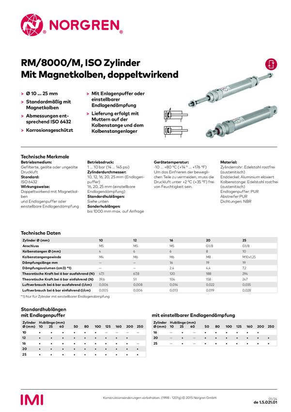 Siłownik okrągły IMI NORGREN RM/8025/M/25 Długość skoku: 25 mm Średnica produktu: 25 mm
