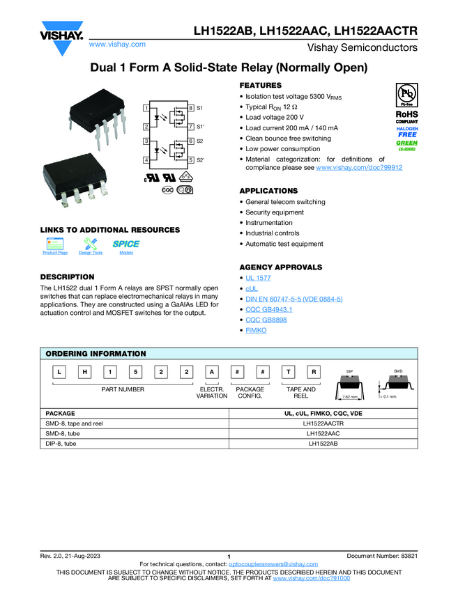Dual 1 Form A Solid-State Relay (Normally Open)