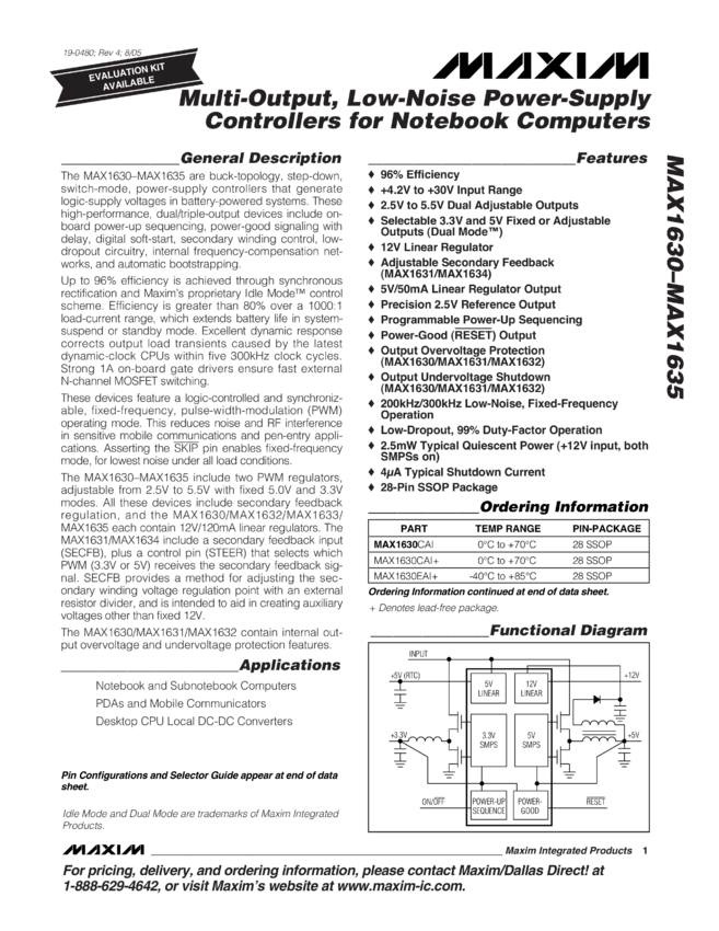 MAX1630, MAX1631, MAX1632, MAX1633, MAX1634, MAX1635 Multi Output, Low-Noise Power Supply Controllers for Notebook Computers
